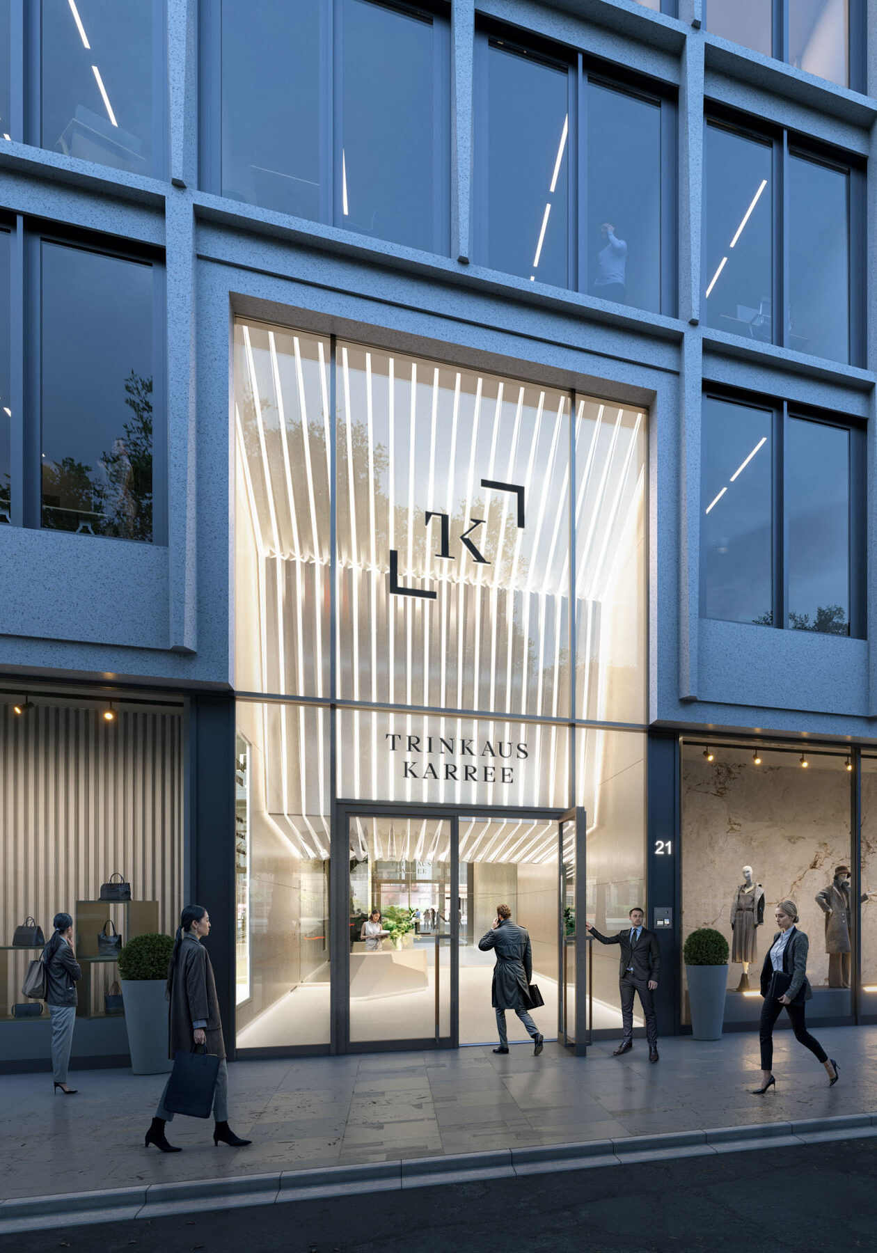 Das neue TRINKAUS KARREE wird zum nachhaltigen Multi-Use-Gebäude einer neuen Generation. Es fügt sich elegant in die Nachbarschaftsarchitektur ein und bildet mit seinem Nachhaltigkeitskonzept und dem vielfältigen Nutzungsmix ein neues, zentrales Landmark für neues und modernes Arbeiten an der traditionsreichen Königsallee. Mit Bedacht als architektonisches Highlight geplant und mit besonderem Fokus auf die Themen Nachhaltigkeit, Well-Being und Smart Building.